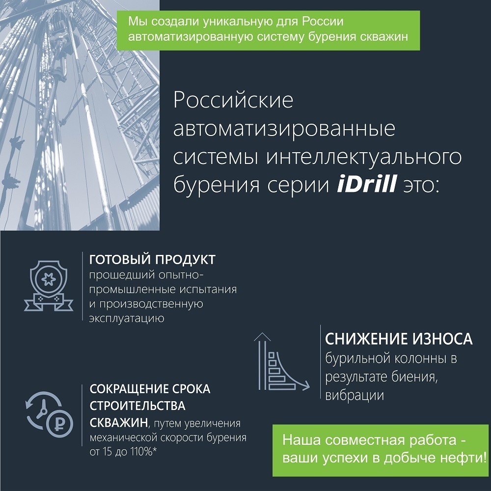 Сегодня российские автоматизированные системы интеллектуального бурения серии «iDrill» - это инструмент качественной работы предприятия, смотрящего в будущее, вне зависимости от его масштаба.