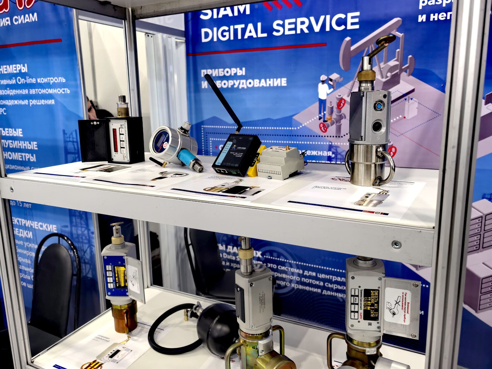 На стенде компании также были представлены традиционные решения: устьевые и глубинные манометры с межповерочным интервалом до 15 лет, системы постоянного скважинного контроля «СПСК-СИАМ», электрические лебёдки для спуско-подъемных операций, а также программные продукты: Siam Data Spectrum, BD Siam и Siam Well Test.